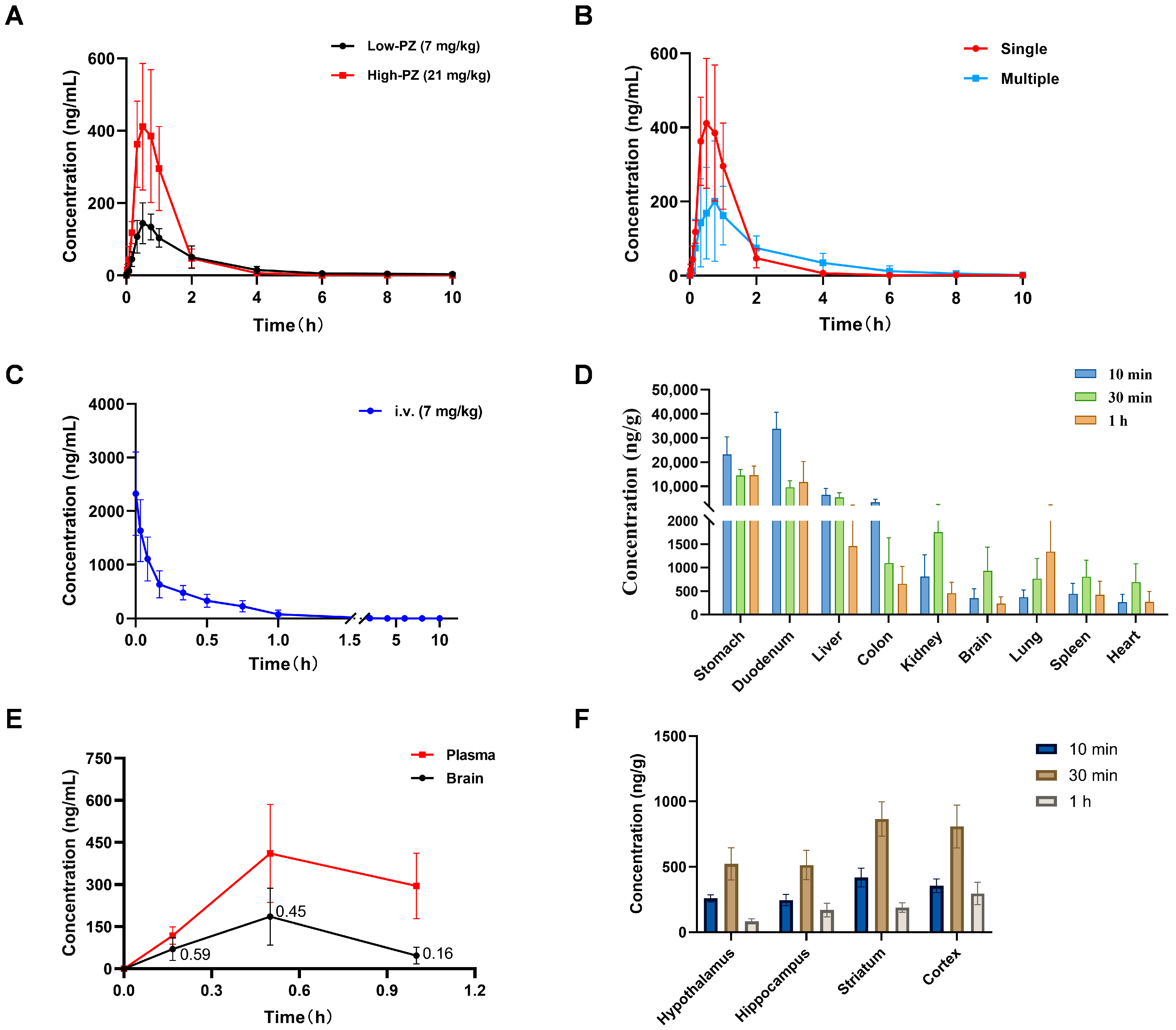 2.6. Blood Concentration–Time Curve of PZ-2891