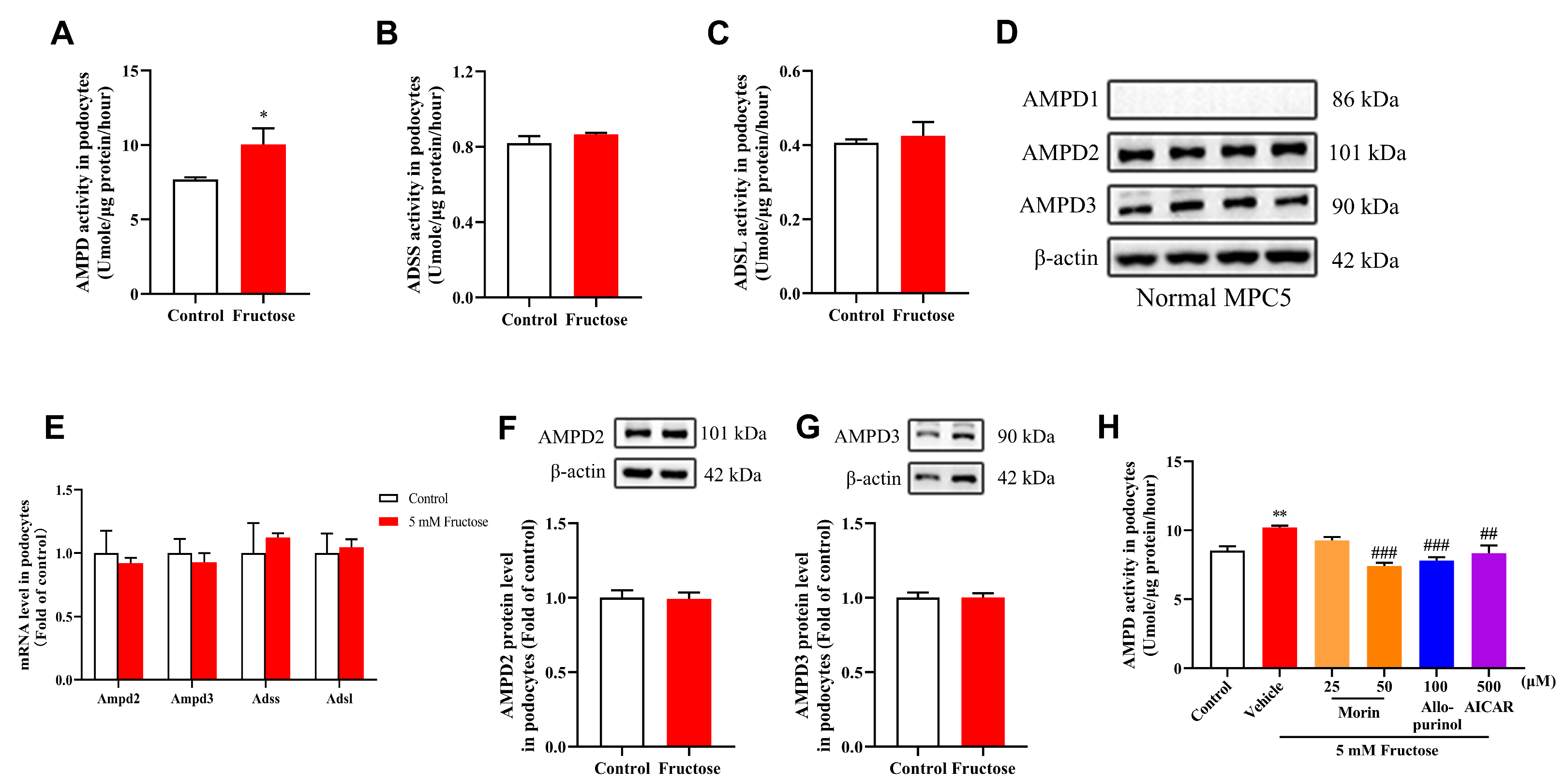 2.4. Morin Ameliorates Podocyte Injury of High-Fructose-Fed Rats by Inhibiting AMPD Activity