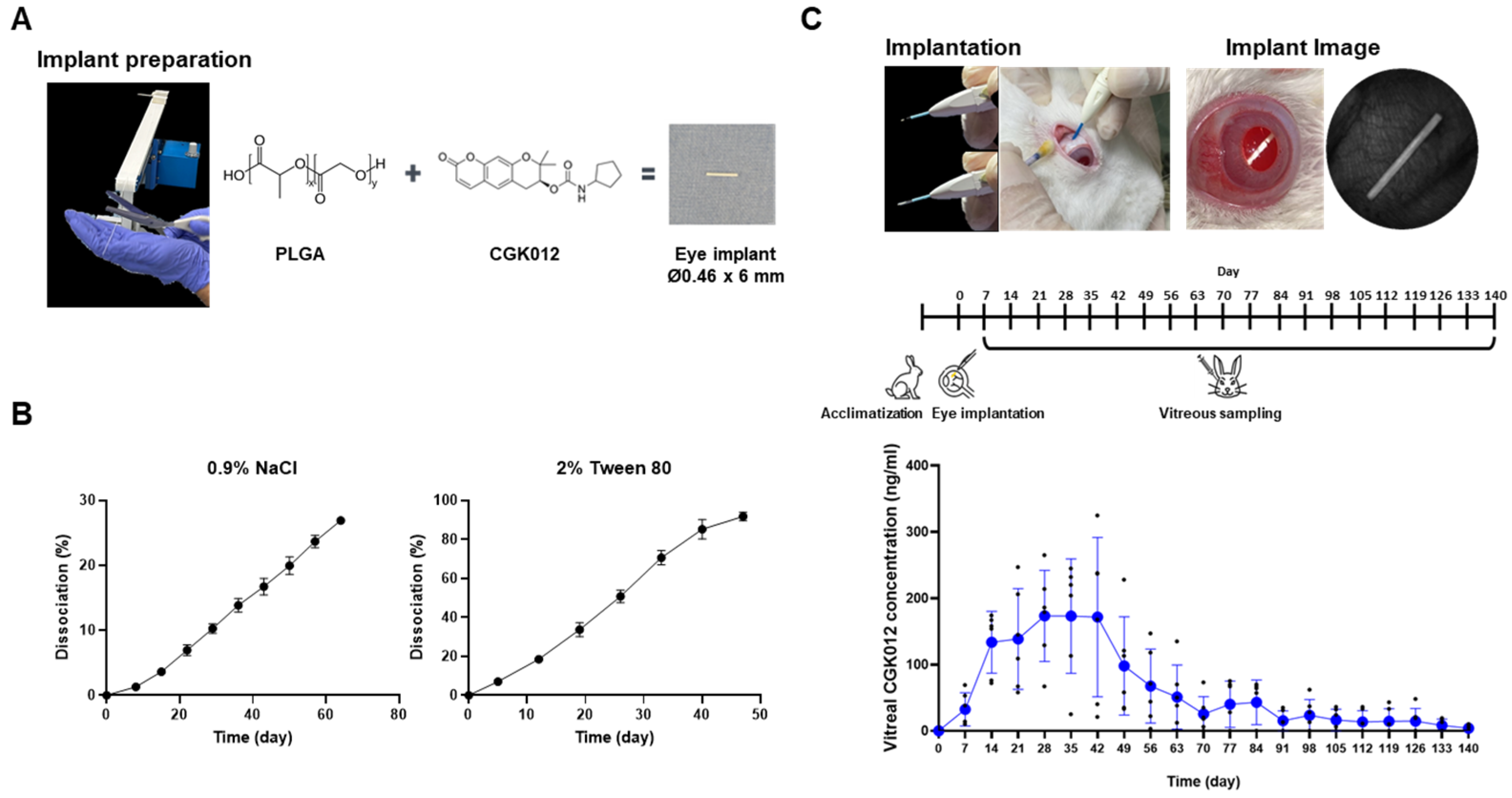 2.4. In Vitro Release and Intraocular Profile of CGK012-Loaded PLGA Implant