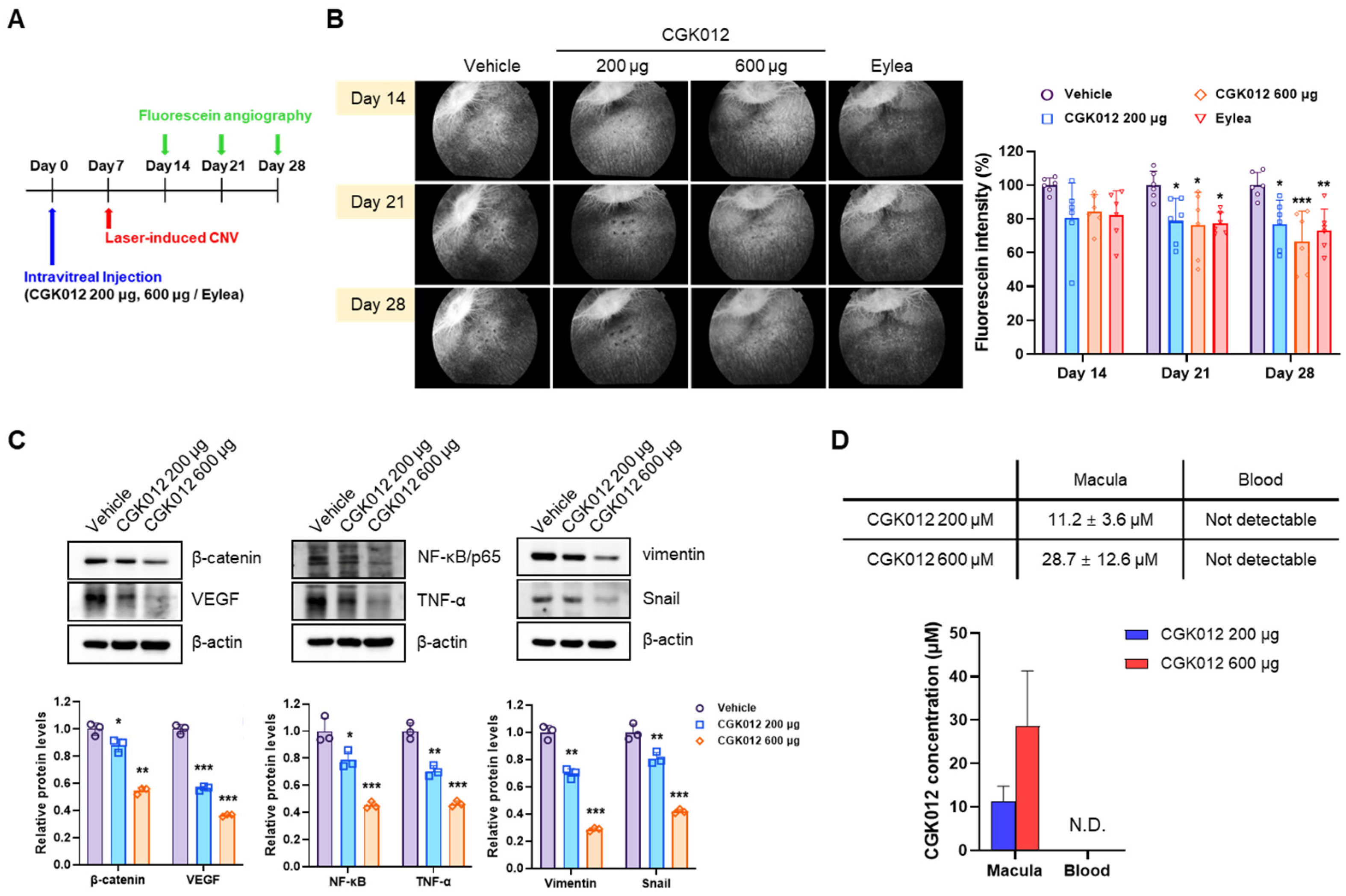 Chicago/Turabian StylePark, Seoyoung, Jihyun Won, Jong Beom Heo, Juhyung Kang, Ye Woon Oh, Geunji Park, Giseong Lee, Jee-Hyun Lee, Gyu-Yong Song, Wonku Kang, and et al. 2025. "The Therapeutic Effect of a Biodegradable Long-Acting Intravitreal Implant Containing CGK012 on Neovascular Age-Related Macular Degeneration by Promoting β-Catenin Degradation" Pharmaceuticals 18, no. 12: 1884. https://doi.org/10.3390/ph18121884