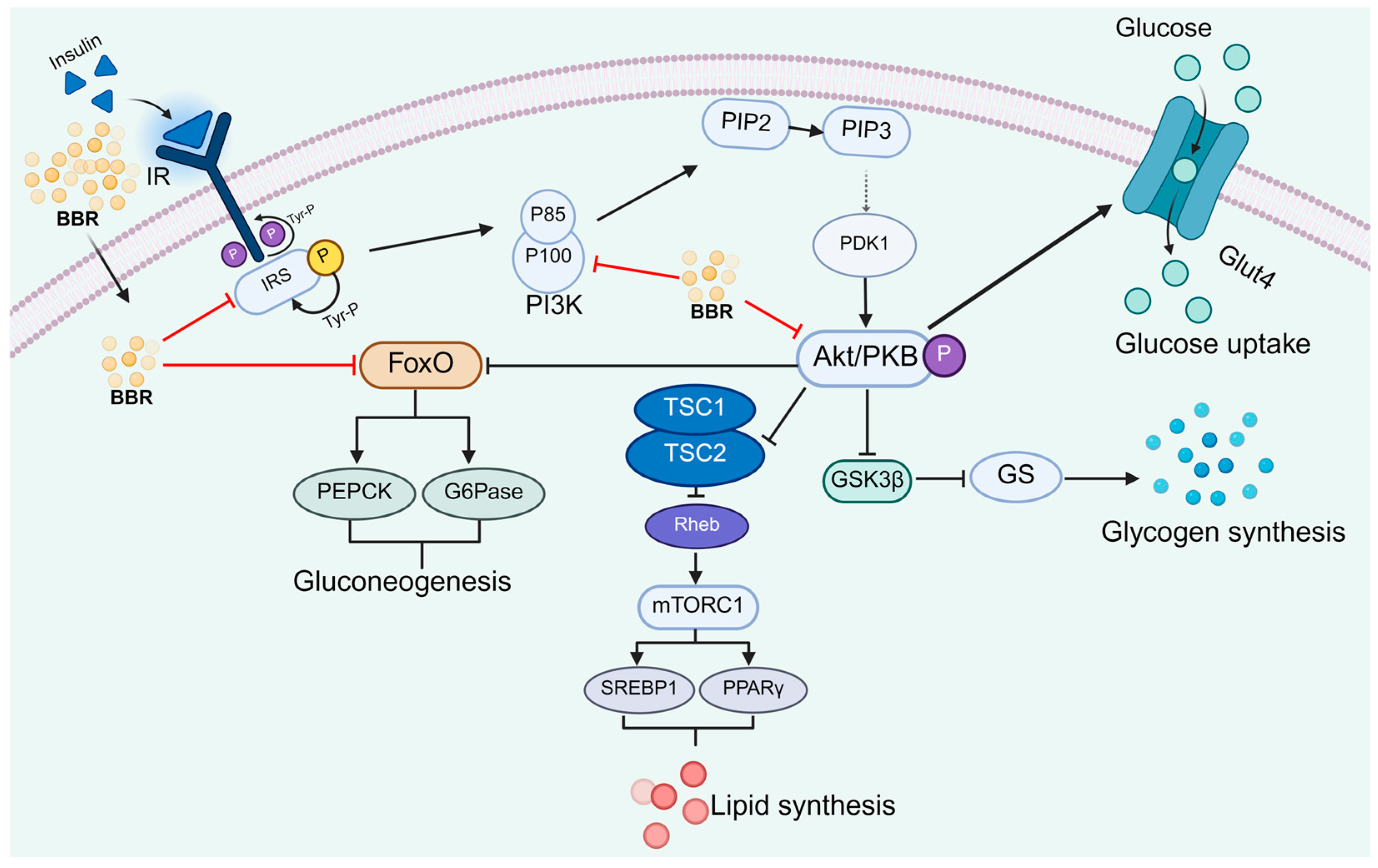 2.3. Regulation of the Insulin Signaling Pathway by Berberine