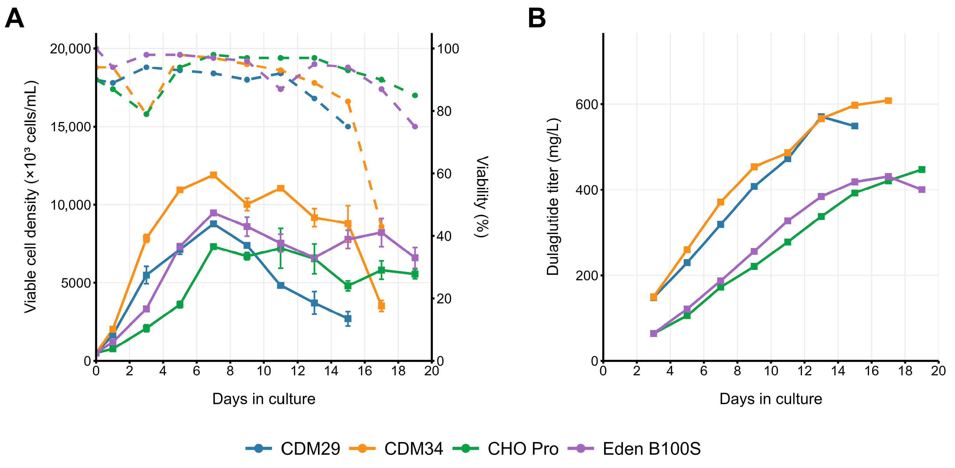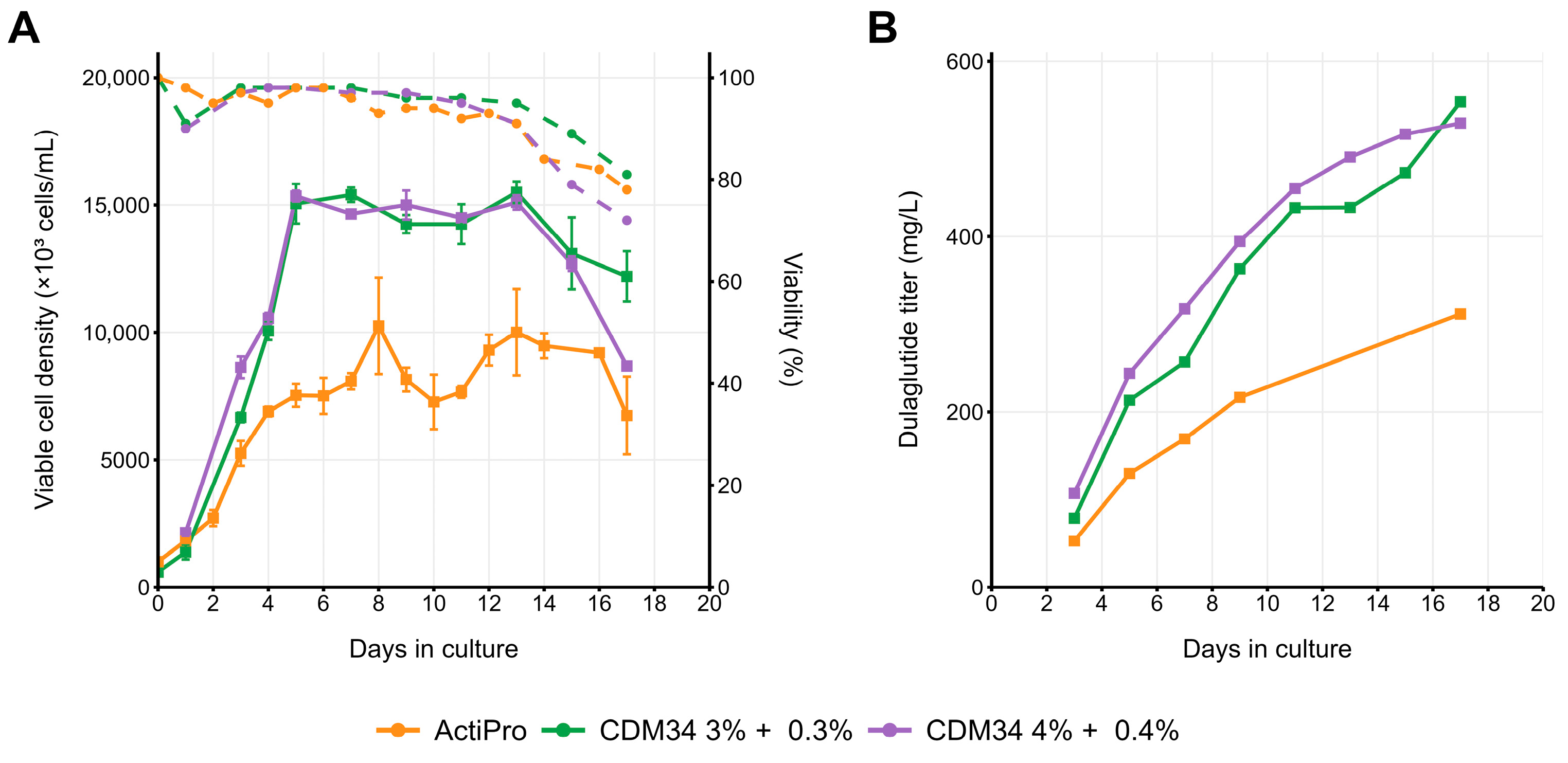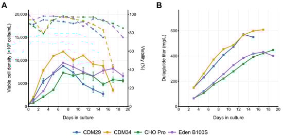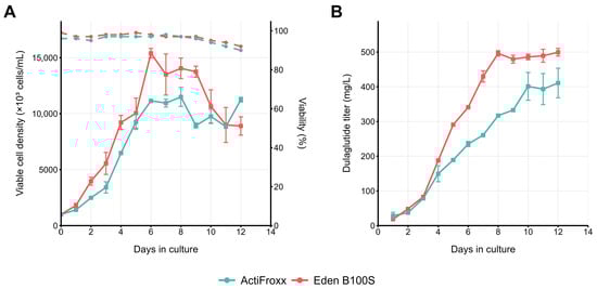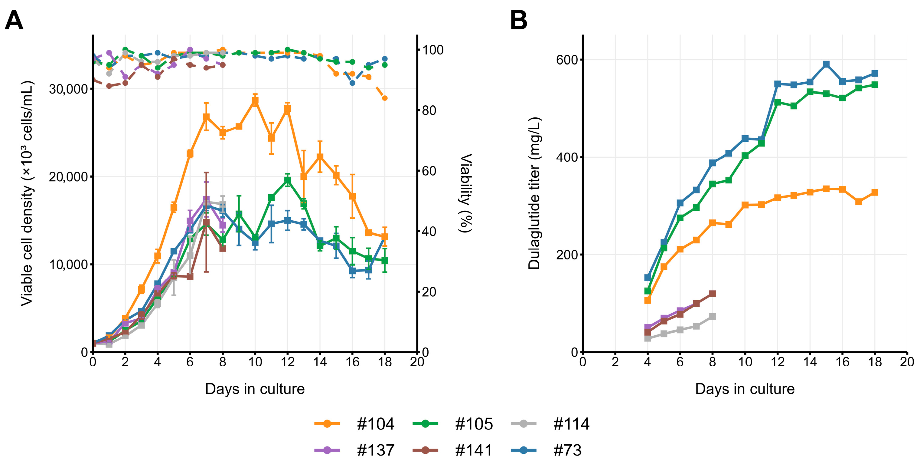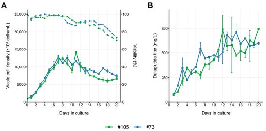 APA StyleShaifutdinov, R. R., Sinegubova, M. V., Vorobiev, I. I., Prokhorova, P. E., Podkorytov, A. B., & Orlova, N. A. (2025). Production of a Dulaglutide Analogue by Apoptosis-Resistant Chinese Hamster Ovary Cells in a 3-Week Fed-Batch Process. Pharmaceuticals, 18(12), 1896. https://doi.org/10.3390/ph18121896