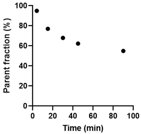 Figure 5. Time-course for parent radioligand in plasma following the intravenous administration of [11C]AZD2423.