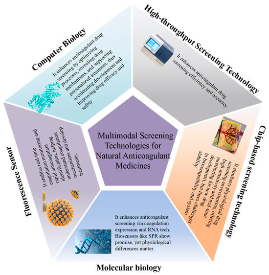 Multimodal screening, with its distinct advantages of precision and efficiency, is emerging as a pivotal technology in the field of medicine development. This article delves into the application of high-throughput screening, chip technology, molecular biology-based screening techniques, fluorescence sensor-based screening, and computational biology in the identification of active components for anticoagulant medicines. As depicted in Figure 2, the employment of these technologies has significantly enhanced the efficiency and accuracy of medicine screening, providing robust technical support for the development of novel anticoagulants. Through these advanced screening methods, researchers can rapidly identify active components with therapeutic potential, thereby accelerating the process of medicine discovery and development.