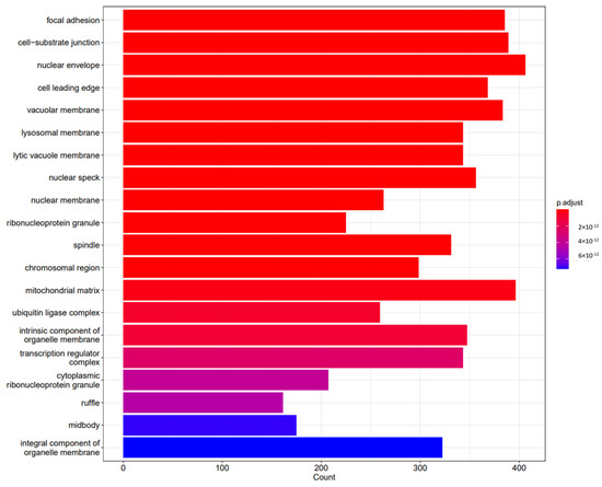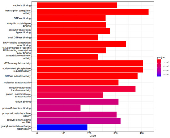 Following functional enrichments, gene sequencing revealed how specific genes influenced different biological, cellular, and molecular processes. The results are shown in Figure 2, Figure 3 and Figure 4, respectively, and in Table 1.
