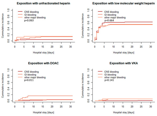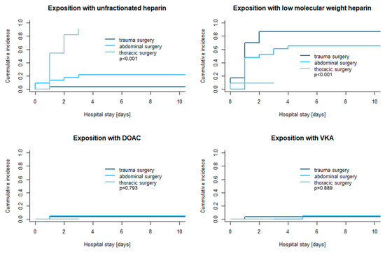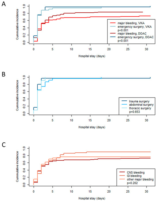 - Last, J.; Herrmann, E.; Birschmann, I.; Lindau, S.; Konstantinides, S.; Grottke, O.; Nowak-Gottl, U.; Zydek, B.; von Heymann, C.; Sumnig, A.; et al. Clinical Course and Management of Patients with Emergency Surgery Treated with Direct Oral Anticoagulants or Vitamin K Antagonists-Results of the German Prospective RADOA-Registry. J. Clin. Med. 2024, 13, 272. [Google Scholar] [CrossRef] [PubMed]
