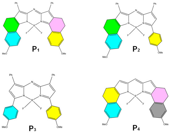 Common ACQ probes are the chemical structures of selected BODIPY and aza-BODIPY dyes (P1 to P4) [68].