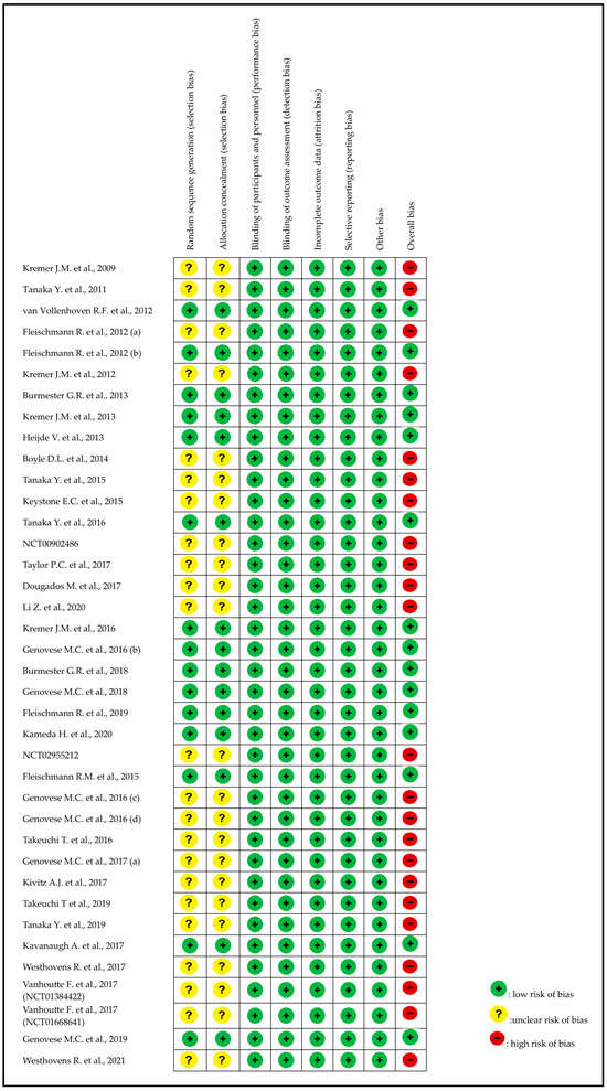 - Wang, F.; Tang, X.; Zhu, M.; Mao, H.; Wan, H.; Luo, F. Efficacy and Safety of JAK Inhibitors for Rheumatoid Arthritis: A Meta-Analysis. J. Clin. Med. 2022, 11, 4459. [Google Scholar] [CrossRef]