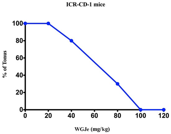 | WGJe | 20–120 | PTZ treated ICR-CD1 mice | / | NE | 57.76 (45.48–73.36) * |
