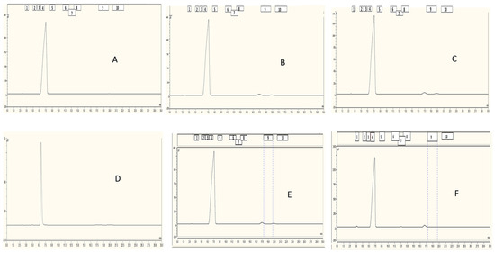 To separate 10 anions, a 9 mM solution with Na2CO3 in MilliQ water was prepared. After sonication, the chromatographic system and the computer were turned on, whereas the “Chromeleon” software was used for the separation and quantification of the samples. Once the system was conditioned to minimize the noise floor, the analysis began. Immediately following the sample treatment, as described in Section 3.2, the solution was filtered and injected, without requiring dilution (as shown in Figure 1, where blank matrix are reported). Treated samples were reanalyzed after 24, 48, and 72 h (without any further treatment) to investigate the analytes’ profile. During this time, samples were stored at 37 °C.
