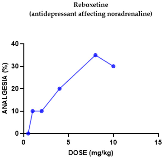 - Schreiber, S.; Frishtick, R.; Volis, I.; Rubovitch, V.; Pick, C.G.; Weizman, R. The Antinociceptive Properties of Reboxetine in Acute Pain. Eur. Neuropsychopharmacol. 2009, 19, 735–739. [Google Scholar] [CrossRef] [PubMed]