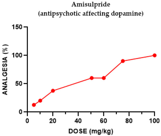 - Weizman, T.; Pick, C.G.; Backer, M.M.; Rigai, T.; Bloch, M.; Schreiber, S. The Antinociceptive Effect of Amisulpride in Mice Is Mediated through Opioid Mechanisms. Eur. J. Pharmacol. 2003, 478, 155–159. [Google Scholar] [CrossRef]
