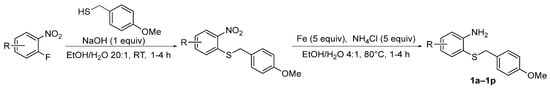 2.1. Synthesis of 2-((4-Methoxybenzyl)thio)aniline Derivatives
