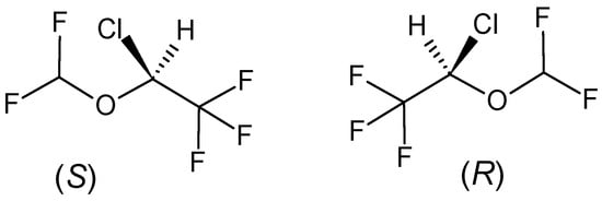 A study of enflurane metabolism using cytochrome P450 2E1 from human livers confirmed that the metabolism of (R)-enflurane was significantly higher than that of (S)-enflurane (ratio 1.9:1), while the rate of racemic metabolism of enflurane was generally between the values observed for the (R)- and (S)-enantiomers [73]. It was demonstrated that the toxicity of the chiral fluorinated volatile anesthetics is closely related to their metabolism by hepatic cytochrome P450.