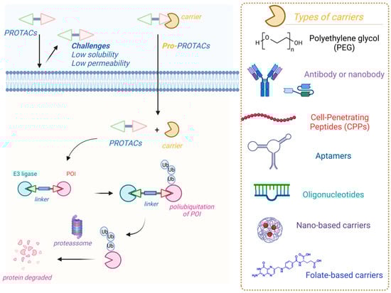 Folate-based carriers are designed as pro-PROTAC to enhance permeability [205,208]. (Figure created in https://BioRender.com).