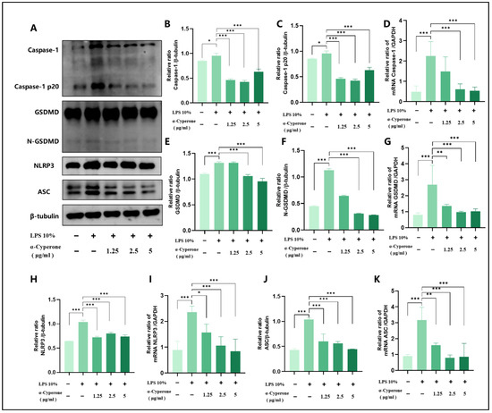 2.5. α-Cyperone Inhibits the LPS-Induced Expression of Caspase-1/GSDMD/NLRP3/ASC in RAEC Cells