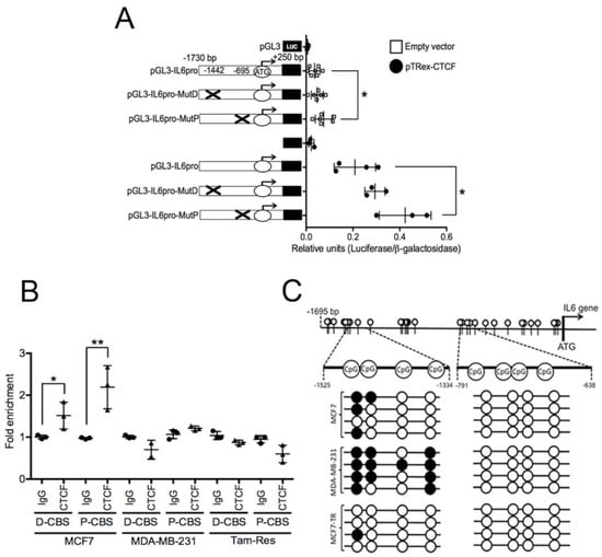 2.2. CTCF Binding Sites Located in the IL6 Promoter Restrain IL6 Expression