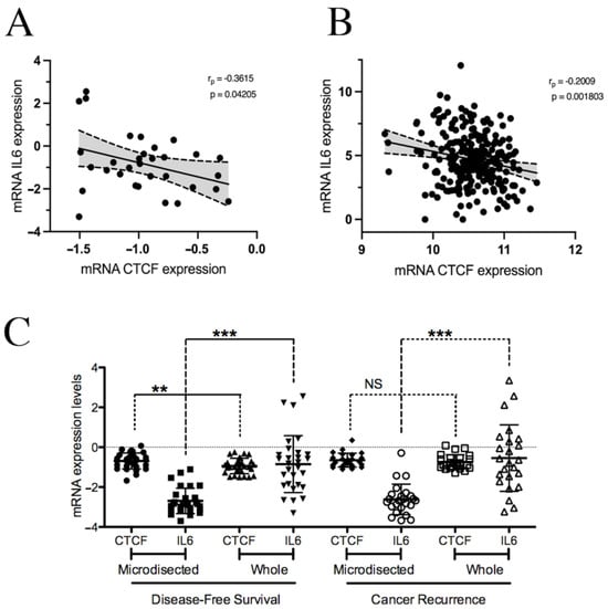 2.5. CTCF and IL6 Expression Levels Are Inversely Correlated in a Subset of Breast Cancer Patients
