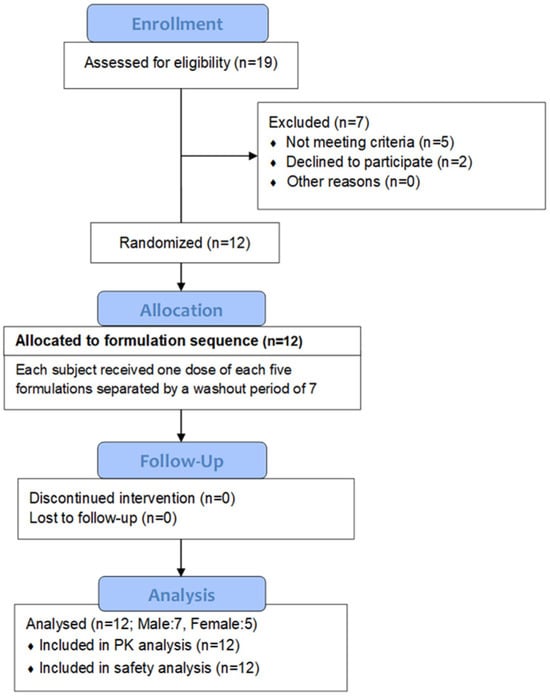 The protocol was authorized by the Spanish Agency of medicines and health products (EudraCT no.: 2017-001303-77, 25/04/2017, registered: REEC—Registro Español de Estudios Clínicos (aemps.es), https://reec.aemps.es/reec/public/web.html; accessed on 19 February 2025) and approved by the Ethics Committee of Instituto de Investigación Sanitaria Hospital Clínico San Carlos, Madrid, Spain (Internal code: 17/160-R_M, 21/04/2017). The study was conducted in accordance with the international ethical recommendations for investigation and clinical trials in humans contained in the Helsinki Declaration and its further revision as well as the recommendations on Good Clinical Practice (International Conference on Harmonization). The informed consent form was signed before each subject’s inclusion in the study, after receiving adequate information about the study design, objectives, and risks.