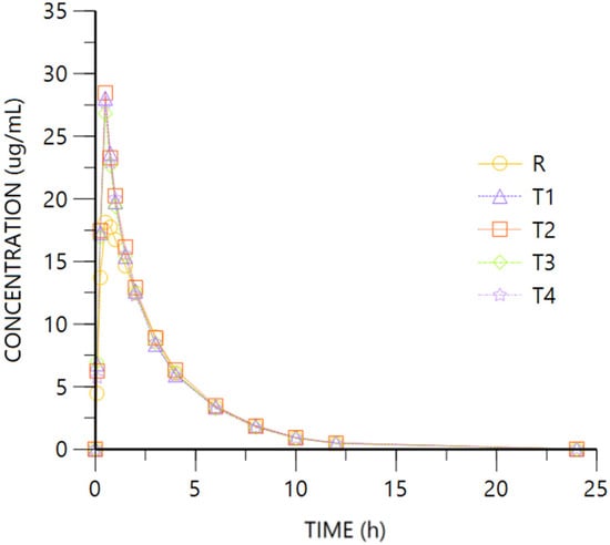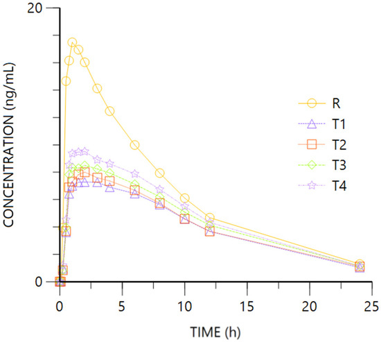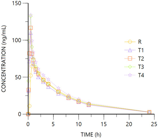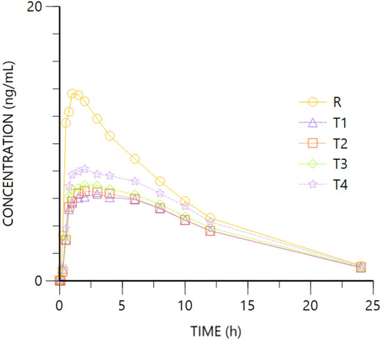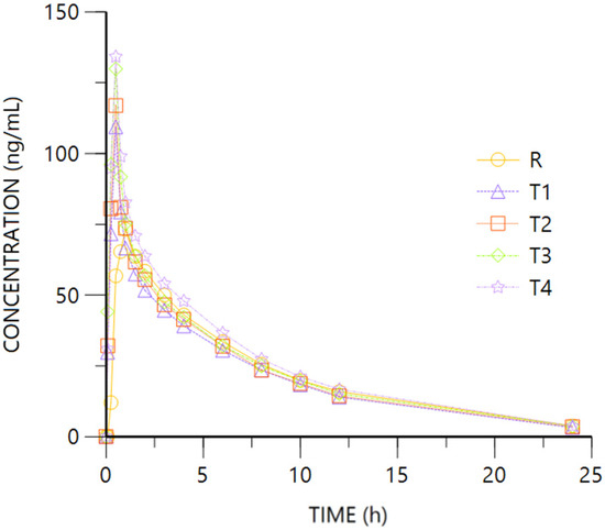 - European Medicines Agency; Committee for Medicinal Products for Human Use (CHMP). Guideline on the Investigation of Bioequivalence; Doc. Ref.: CPMP/QWP/EWP/1401/98 Rev.1/Corr; European Medicines Agency: London, UK, 2010. [Google Scholar]
