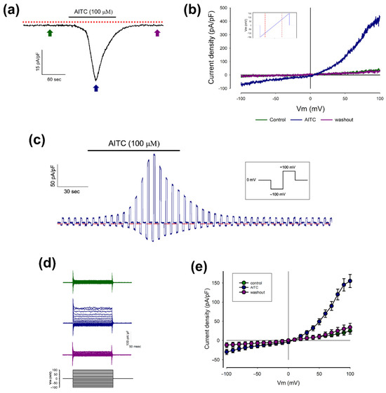 2.1.1. AITC Induces a Transient Current in Freshly Dissociated Chondrocytes