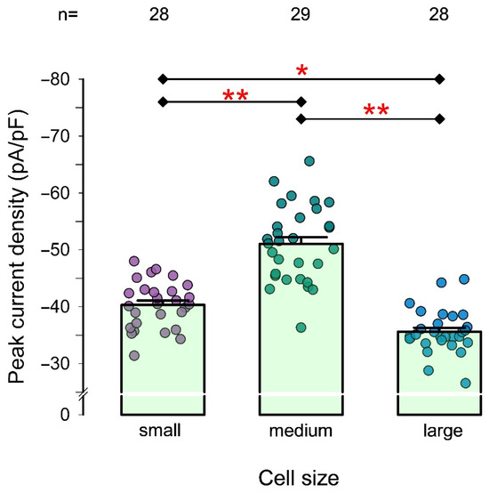 2.2. In Freshly Isolated Chondrocytes, the Magnitude of pId-TRPA1 Varies with Cell Size
