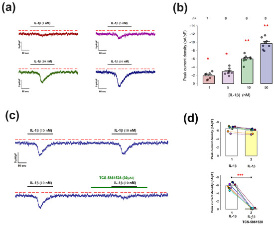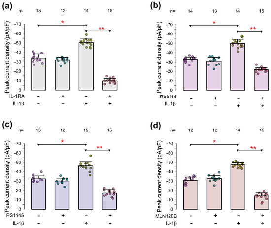 2.6. The IL-1β-Induced Increase in pId-TRPA1 Depends on the Activation of Signaling Components Involved in Inflammation