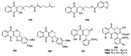 - Papageorgiou, V.P.; Assimopoulou, A.N.; Couladouros, E.A.; Hepworth, D.; Nicolaou, K.C. The Chemistry and Biology of Alkannin, Shikonin, and Related Naphthazarin Natural Products. Angew. Chem. Int. Ed. 1999, 38, 270–301. [Google Scholar] [CrossRef]