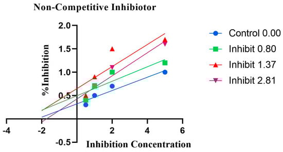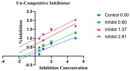 Figure 4 shows the mode of action of analog 10 as a competitive inhibitor, while Figure 5 and Figure 6 show the inhibition action of analog 9 and 5 (as uncompetitive and non-competitive inhibitors).