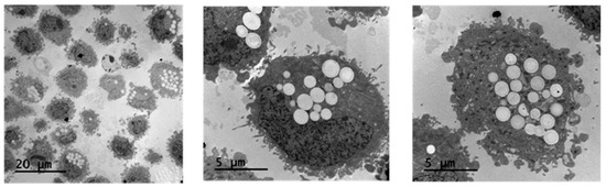 TEM images of the accumulation of NP@I-COSAN inside HeLa cells after 48 h of incubation with solutions of 0.05 M of NP@I-COSAN.