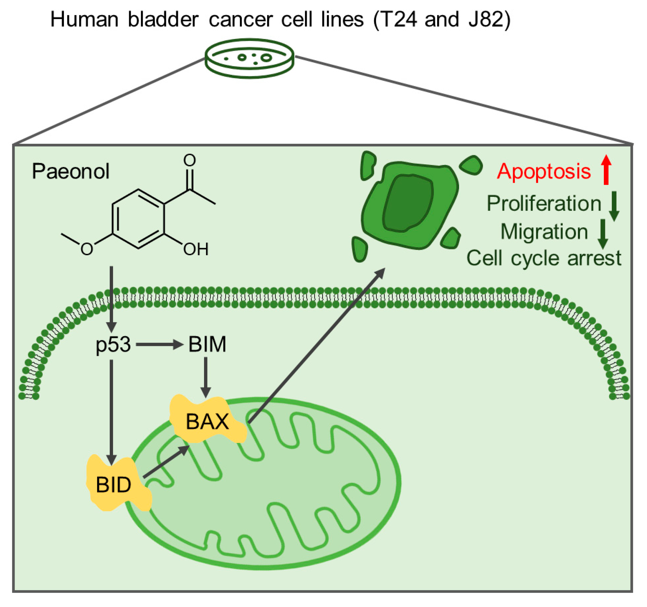 - Zhang, J.J.; Cai, L.J.; Pang, K.; Dong, Y.; Zhang, Z.G.; Li, B.B.; Li, R.; Han, C.H. Paeonol inhibits proliferation and induces cell apoptosis of human T24 and 5637 bladder cancer cells in vitro and in vivo. Clin. Transl. Oncol. 2021, 23, 601–611. [Google Scholar] [CrossRef]