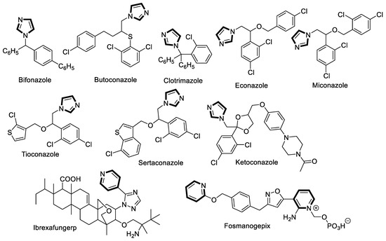 Figure 1. Antifungal drugs with imidazole and pyridine skeleton frequently used in current human therapy.
