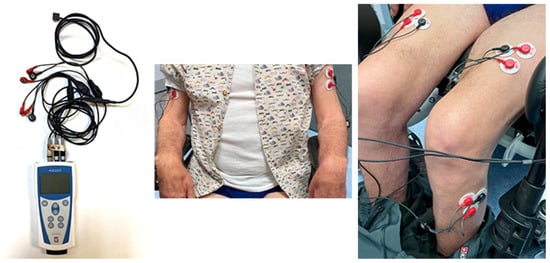 Electrical activity recording just before and after the 2 months of intervention—the recording of electrical activity was performed (performed by a single accredited specialist familiar with ALS patients, preserving intra- and inter-analytical reliability) by each of the study’s participants. For this purpose, with the subject in a seated position, the area where the electrode was to be placed was wiped dry using absorbent cotton to remove any possible sweat. With alcohol impregnated in another portion of this material, the area was cleaned and shaved with a disposable razor, leaving it free of possible interference with the electrode adhesive and distortion of the electrical signal owing to impedance. The area was wiped with alcohol and dried using absorbent cotton to clean and dry the skin.