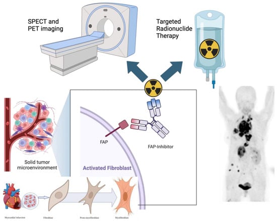 - Rezaei, S.; Gharapapagh, E.; Dabiri, S.; Heidari, P.; Aghanejad, A. Theranostics in targeting fibroblast activation protein bearing cells: Progress and challenges. Life Sci. 2023, 329, 121970. [Google Scholar] [CrossRef]