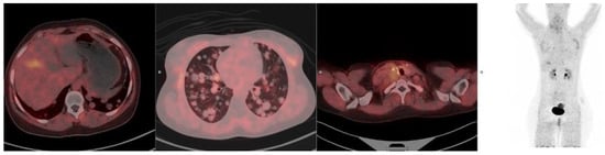 - Manuppella, F.; Pisano, G.; Taralli, S.; Caldarella, C.; Calcagni, M.L. Diagnostic performances of PET/CT using fibroblast activation protein inhibitors in patients with primary and metastatic liver tumors: A Comprehensive Literature Review. Int. J. Mol. Sci. 2024, 25, 7197. [Google Scholar] [CrossRef] [PubMed]
