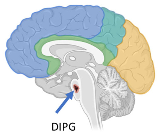 DIPG is a high-grade glioma (h-GG) located in a critical region of the brain called the pons (Figure 1), which is responsible for controlling several vital bodily functions, such as the heartbeat, balance, swallowing, vision, and breathing. It accounts for 10% of all pediatric brain tumors. To date, DIPG remains one of the most difficult brain tumors to treat [6].