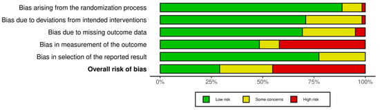 - Higgins, J.P.; Savović, J.; Page, M.J.; Elbers, R.G.; Sterne, J.A. Chapter 8: Assessing risk of bias in a randomized trial. In Cochrane Handbook for Systematic Reviews of Interventions Version 6.3; Higgins, J.P.T., Thomas, J., Chandler, J., Cumpston, M., Li, T., Page, M.J., Welch, V.A., Eds.; Updated February 2022; Cochrane: Cochrane, AB, Canada, 2022; Available online: https://training.cochrane.org/handbook/current/chapter-08 (accessed on 18 February 2025).