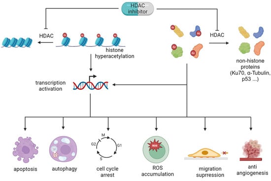 Biological functions of HDACi via altering the acetylation level of histone/non-histone proteins.