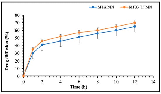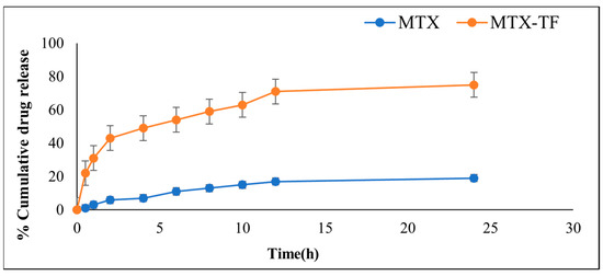 2.6.3. In Vitro Release Study of MTX-MN and MTX-TF-MN