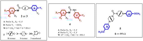 - Linker modification (Series 2):carbamate 2b (W = O) > methylene-amide 2c (W = CH2) > urea 2a (W = NH) > carbamothioate 2d (W = S) > PFI-3 (1).