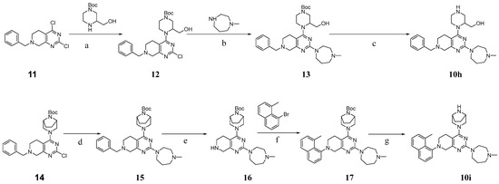3.2.17. (1-(7-Benzyl-2-(4-methyl-1,4-diazepan-1-yl)-5,6,7,8-tetrahydropyrido [3,4-d]pyrimidin-4-yl)piperazin-2-yl)methanol (10h)