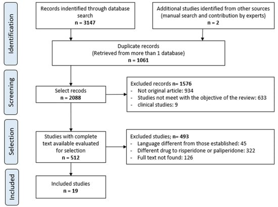 Exclusion: articles for which the full text was unavailable; articles not written in English or Spanish; articles that did not include subjects with schizophrenia or schizoaffective disorders; and articles that did not include risperidone or paliperidone in their studies.