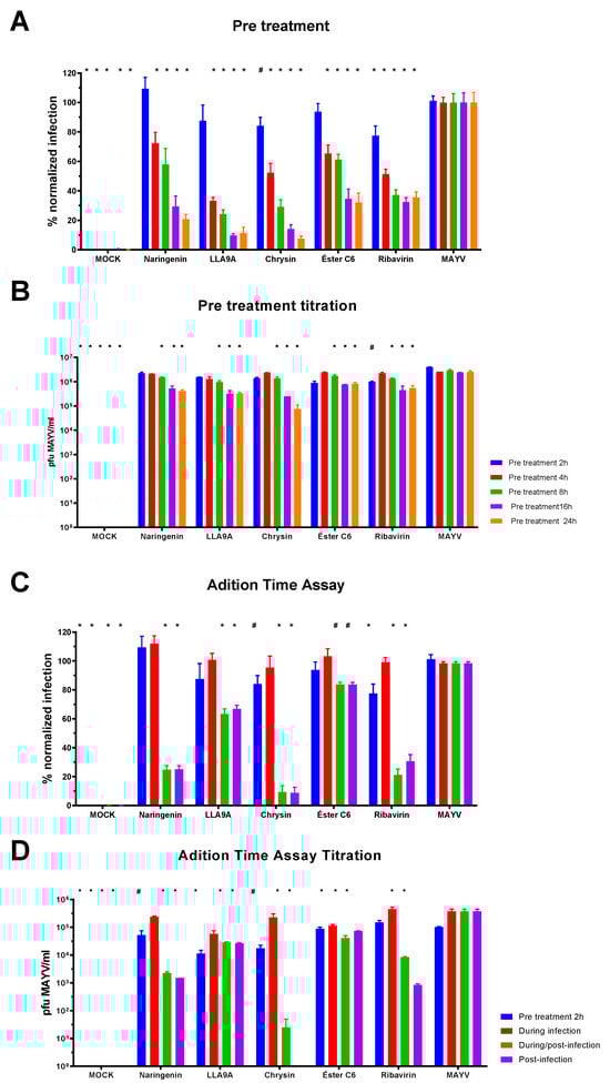 4.4. Screening for the Anti-MAYV Activity of the Compounds