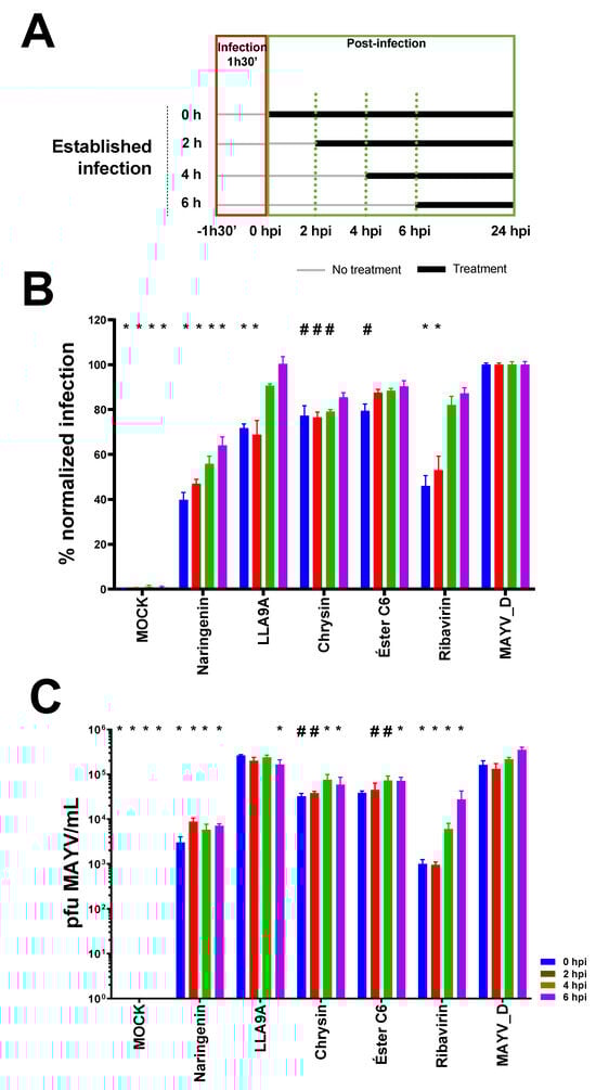 2.8. Antiviral Effectiveness of the Compounds in Established MAYV Infection in Cell Culture