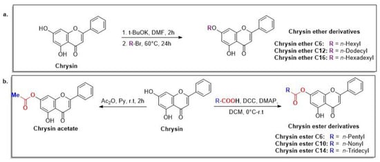 - Suroengrit, A.; Yuttithamnon, W.; Srivarangkul, P.; Pankaew, S.; Kingkaew, K.; Chavasiri, W.; Boonyasuppayakorn, S. Halogenated Chrysins Inhibit Dengue and Zika Virus Infectivity. Sci. Rep. 2017, 7, 13696. [Google Scholar] [CrossRef]