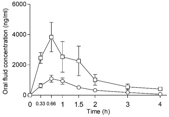 4.4. Oral Fluid Concentrations and Statistical Analysis