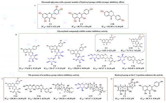 2.1. Inhibition Activity of Flavonoids on α-Glucosidase