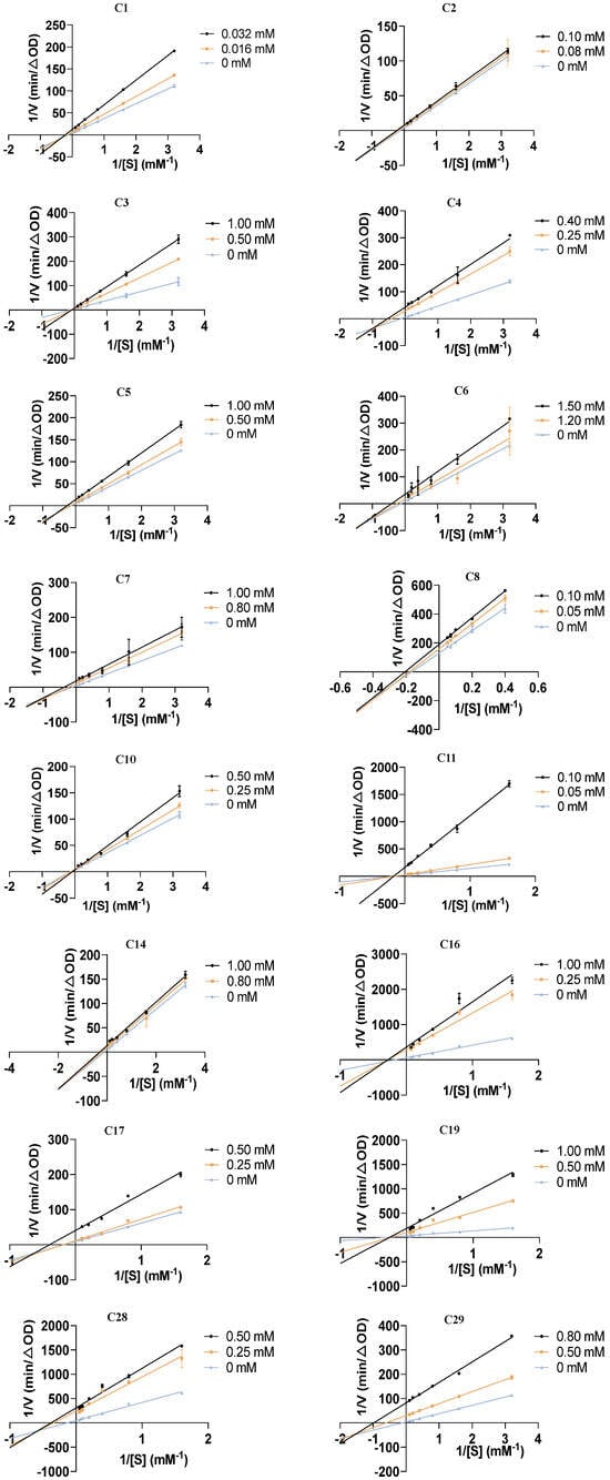 2.3. Kinetic Type of Inhibition on α-Glucosidase