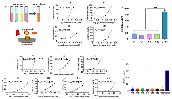 - Ma, Y.Y.; Zhao, D.G.; Zhang, R.Q.; He, X.; Li, B.Q.; Zhang, X.Z.; Wang, Z.J.; Zhang, K. Identification of bioactive compounds that contribute to the α-glucosidase inhibitory activity of rosemary. Food Funct. 2020, 11, 1692–1701. [Google Scholar] [CrossRef]