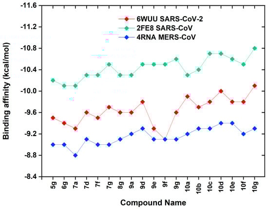 Here, comparison of docking results with PLpro enzymes of other CoVs is also critical for understanding binding trends between species. In this context, when the binding affinities obtained for SARS-CoV-2 PLpro (6WUU) are compared with the affinities calculated for SARS-CoV PLpro (2FE8) and MERS-CoV PLpro (4RNA), it is seen that the binding scores for MERS-CoV PLpro are slightly lower than the other ones. However, it is noteworthy that the affinity values obtained for SARS-CoV PLpro were significantly higher compared to SARS-CoV-2 PLpro.
